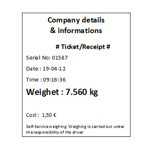 Работа на системата: Водачът на превозното средство поставя автомобила върху везната и плаща съответната стойност в слота за монети. Стойността на претеглянето се появява в предната част на системата и данните от претеглянето също така се получават и от принтера.