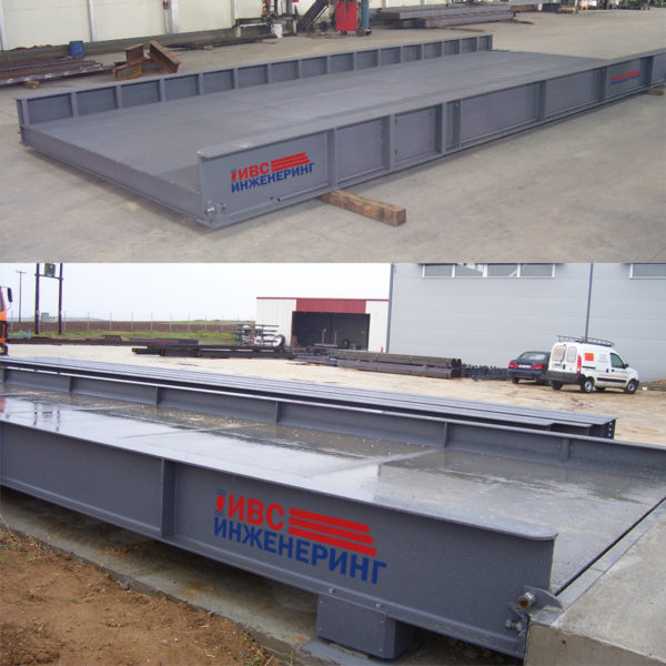 Above ground fully metal weighbridge consisting of metal beams IPE and UPN for the metal frame with metal rolling platform. With side parapets at dimensions and capacitys for weighing all truck types.